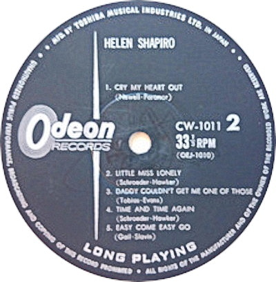 Side 2: OEJ-1010-2 1. Cry my heart out 2. Little Miss lonely 3. Daddy couldn`t get me one of those 4 Time and time again 5 Easy come easy go